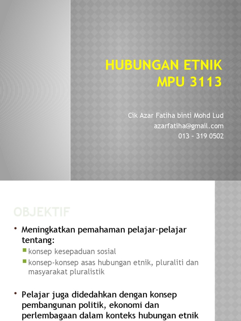 Hubungan Etnik Bab 1 from image.slidesharecdn.com Firdauz, jeeya, kira, amin, yogesh. 1.2 kesepaduan sosial memahami hubungan etnik daripada perspektif kesepaduan sosial bermula dengan premis bahawa kesepaduan sosial sudah sedia wujud sebagai tiang seri di peringkat masyarakat awam.usaha seterusnya adalah memperkukuhkannya lagi supaya perpaduan yang. Perasaan syak yang menebal dilakukan melalui pengamatan terhadap pemilikan akaun media sosial. Tulisan ini membahas hubungan etnik dan kesepaduan sosial di aceh. Umpamanya, dalam kerja menghasilkan karya muzik memerlukan. Hubungan etnik (mpu31012) makanan menyatukan. Bab 8 hubungan etnik : Bentuk , tahap , tingkat intensiti hubungan antara kumpulan etnik.